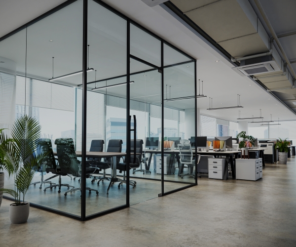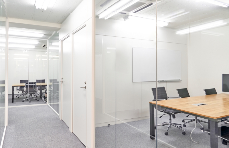 完全に空間を区切るため、外部からの視線や音を大幅に遮断できます。集中して業務に取り組みたいスペースや、会議室、応接室、役員室など、高いプライバシーが求められる場所に最適です。